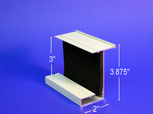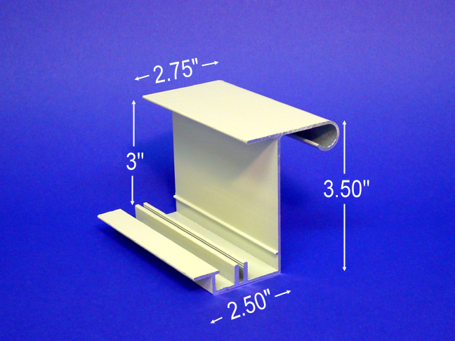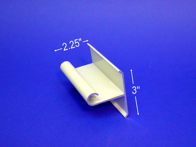 Extruded "J" rail is used with "J" wall mount to create a strong, adjustable hanging system for patio covers. Built in screw boss and drain. Screw boss is above the lower trough and eliminates leakage at this point. Accepts neoprene gasket, enables you to build the cover in the shop or on the ground and drop in place on the wall mount.