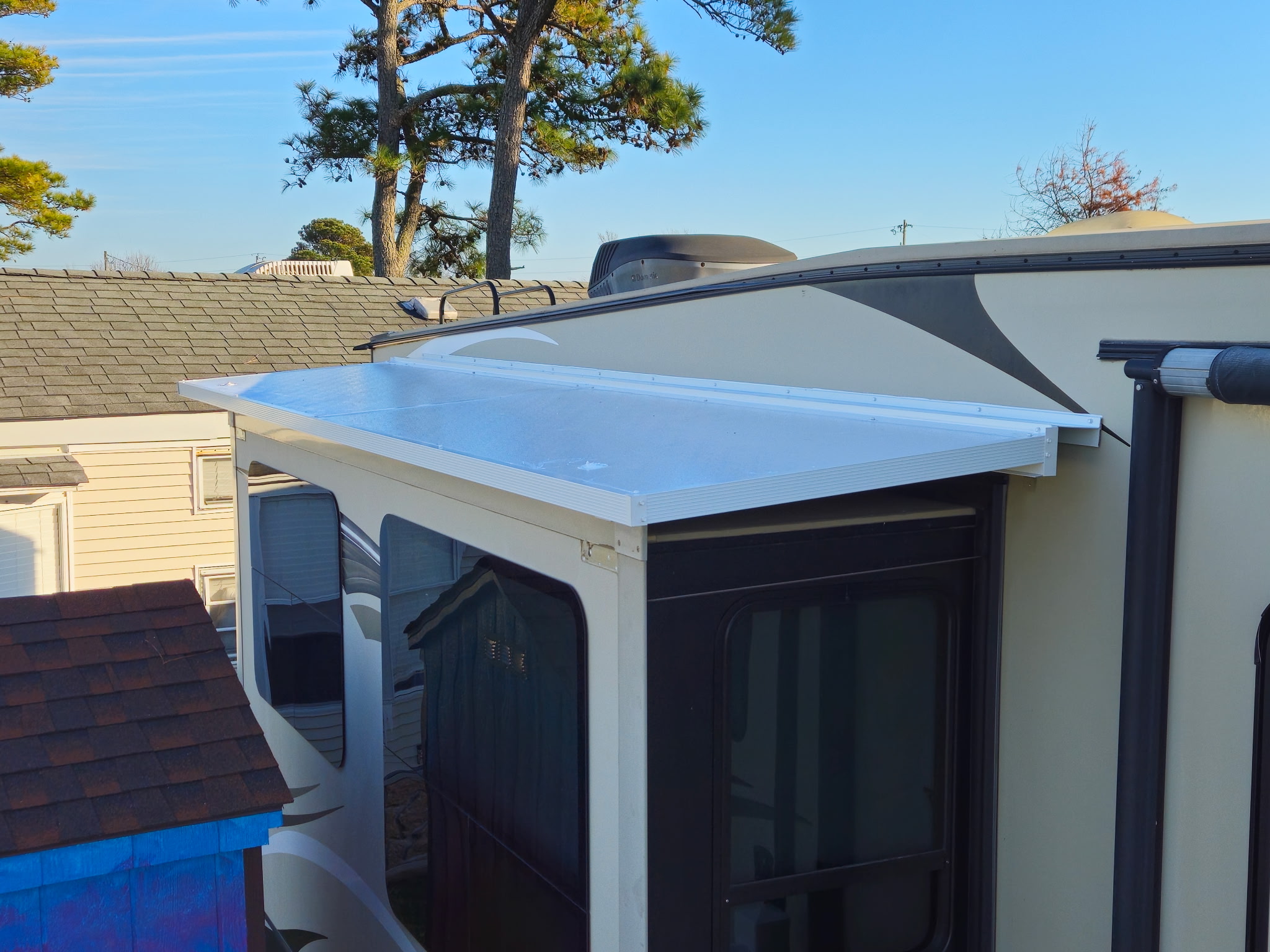 With our innovative hinged rail system, you can easily lower your slide out cover during the off-season or whenever you need to transport your RV. Simple, secure and designed for real-world convenience.