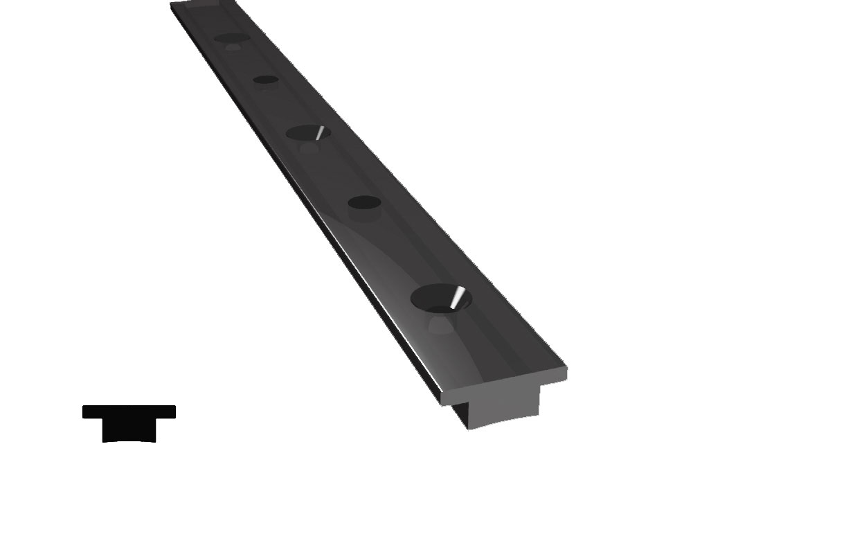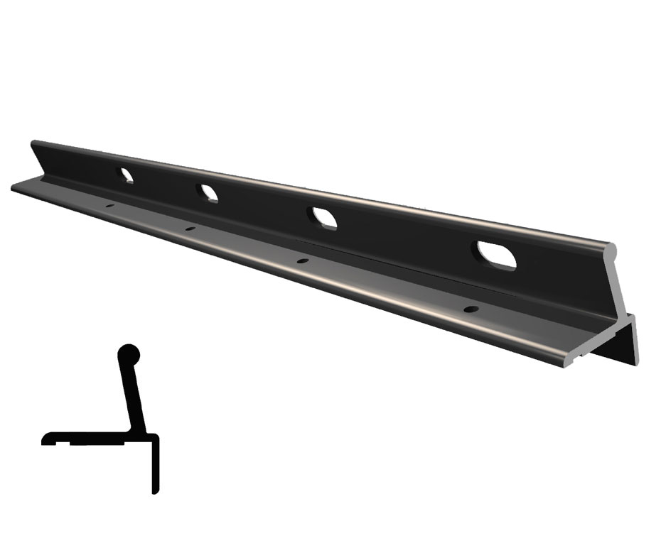 An exact replacement for most of the Canadian built C & C's of the 70's and 80's Mounting holes are spaced 4.0” on center. Rail has 6.75” x 1.57” oval slots on 3.50” centers. Lengths are all 20'-0" as per the original design. Black Hard Coat Anodized provides a long- lasting finish.